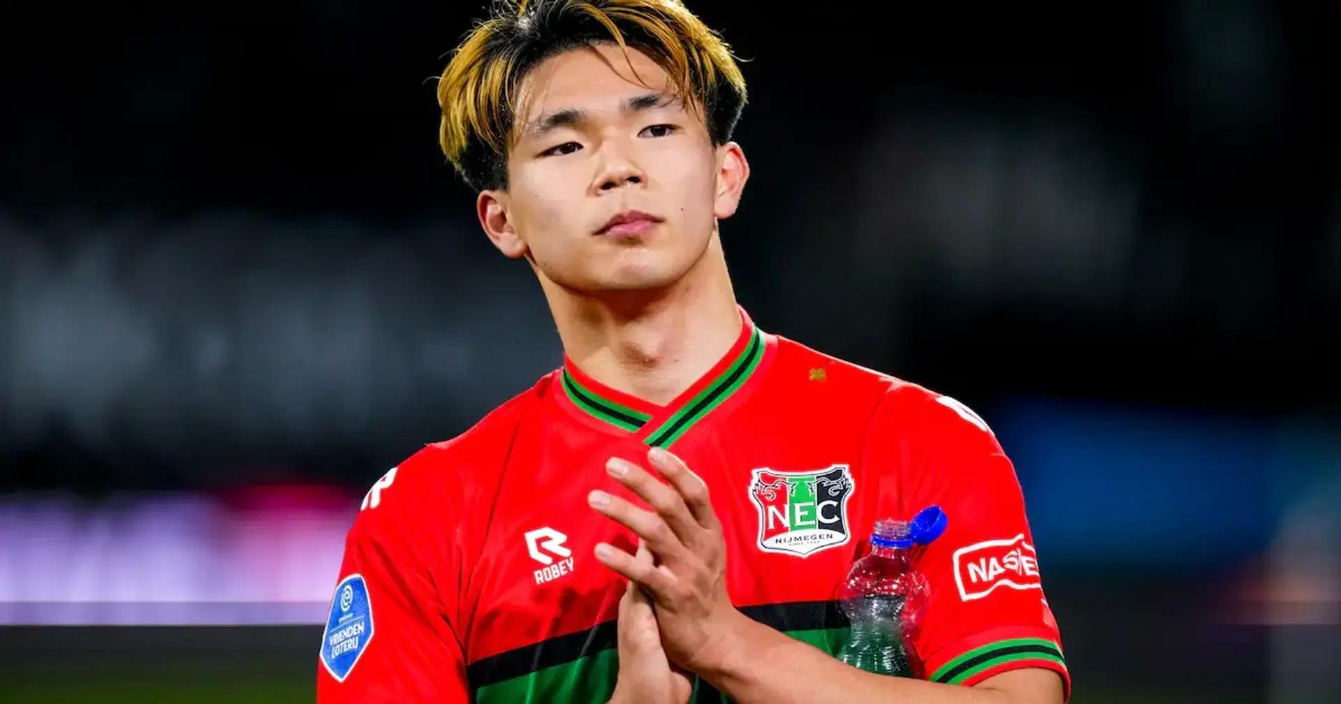 现年20岁的盐贝健人本赛季在荷甲出战12场比赛,打入7球。由于合同中设有解约条款,他可以在满足条件的情况下离开奈梅亨。